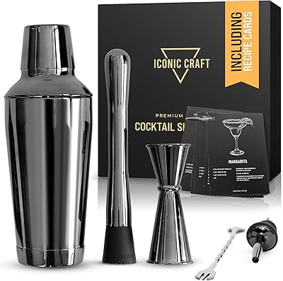 Iconic Craft | Premium Cocktail Shaker Set with Premium Gift Box, 5 Piece Cocktail Shaker Set with Recipe Cards, Bartender Shaker Kit, Home Bartending Set