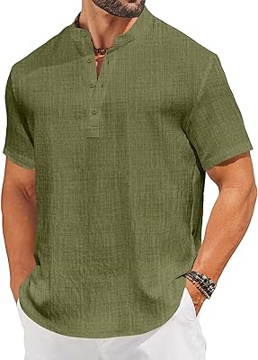 COOFANDY Mens Casual Henley Shirt Short Sleeve Linen Shirt Band Collar Summer Hippie Beach T-Shirts